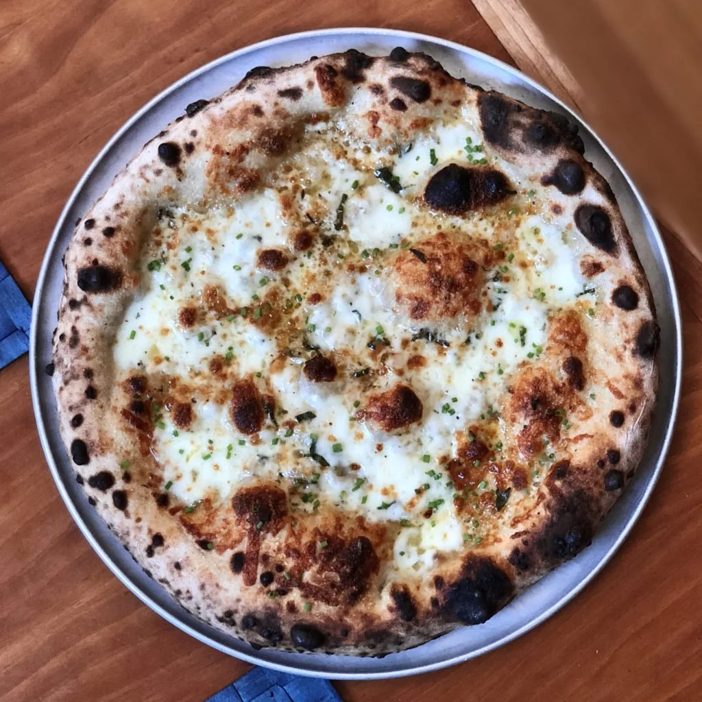 All pizzas are made with our 72-hour, enzyme-rich fermented dough, developed in partnership with Guglhupf in Durham. It’s both airy and crunchy, with a fragrant aroma from the natural yeast.